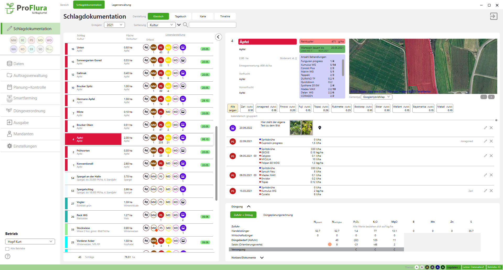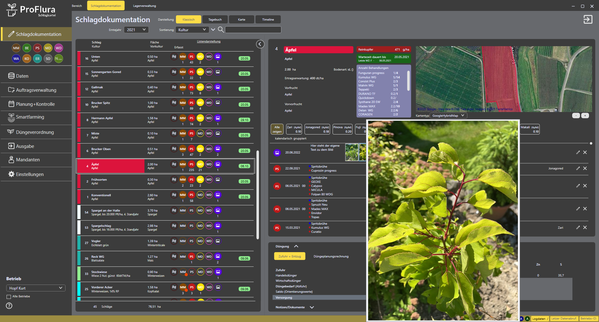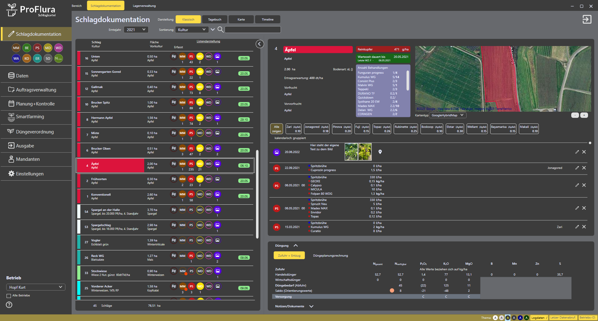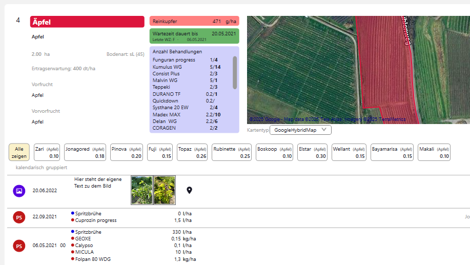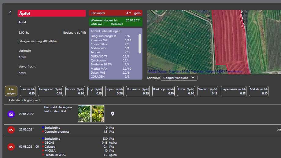- Bilder, Kommentare mit GPS-Koordinaten direkt am Schlag/Sorte/Satz abspeichern