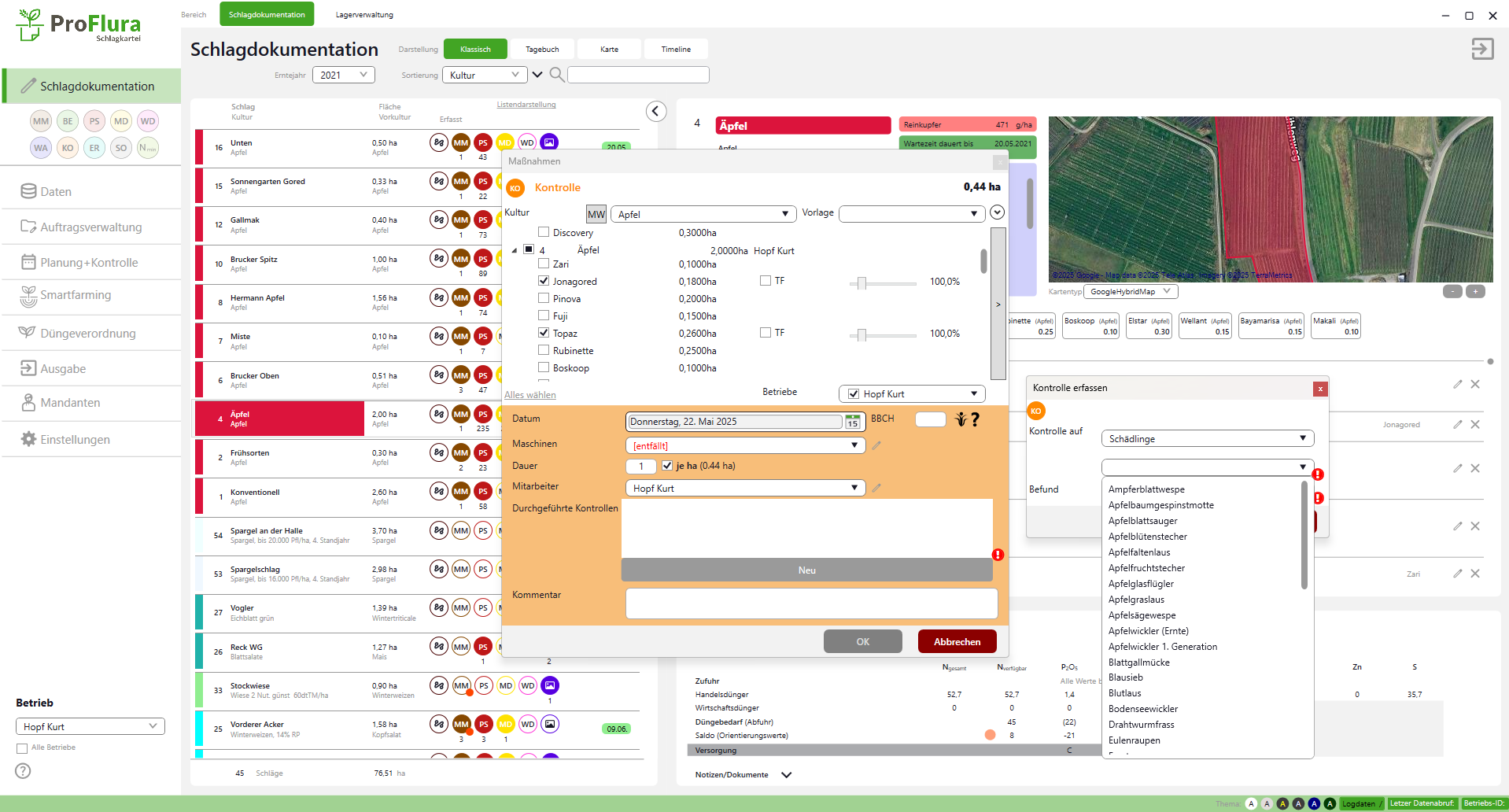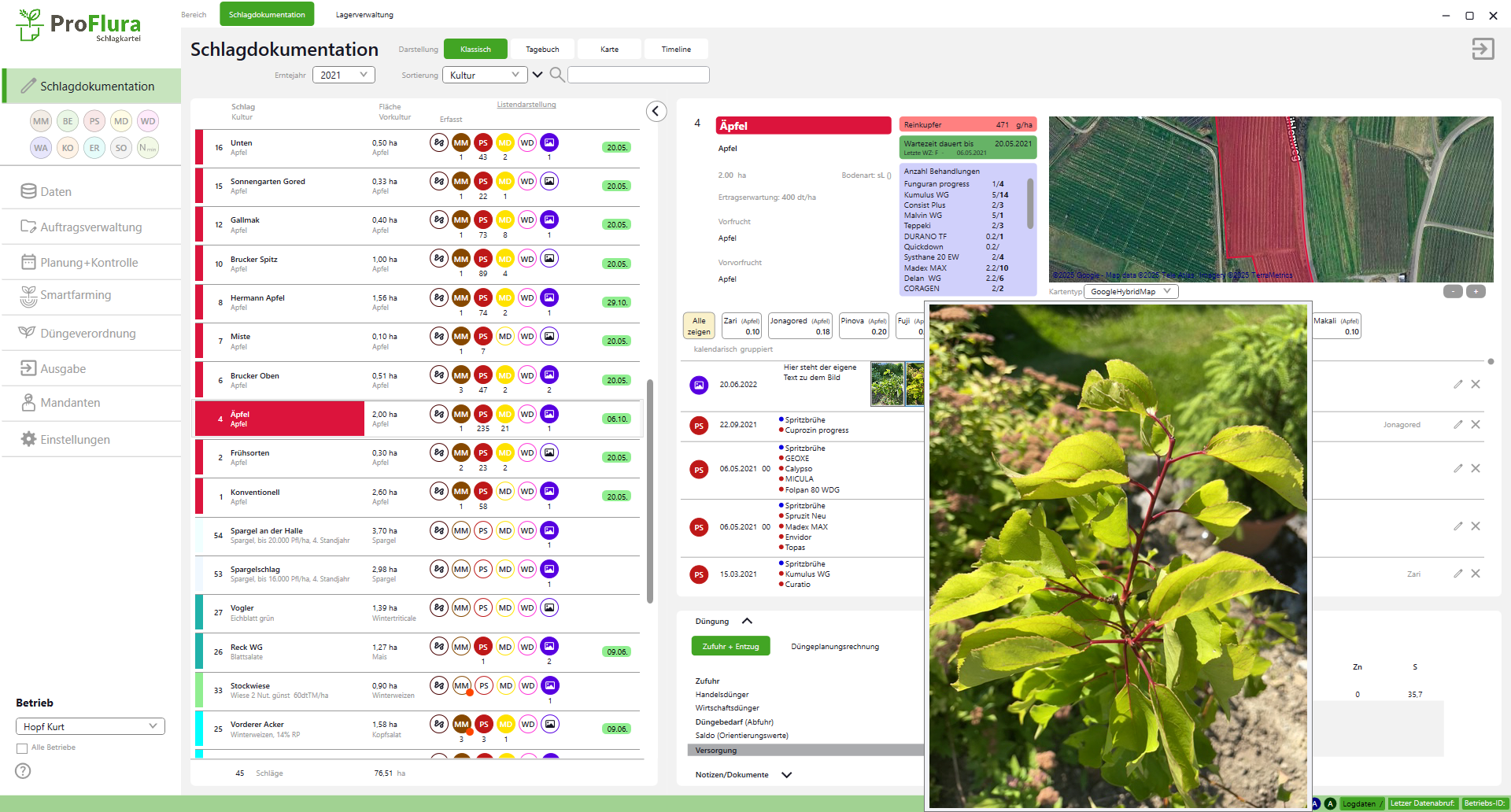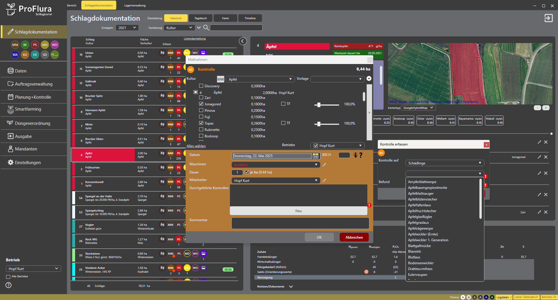 - Bilder, Kommentare mit GPS-Koordinaten direkt am Schlag/Sorte/Satz abspeichern