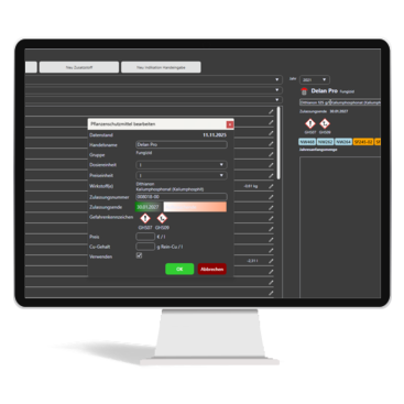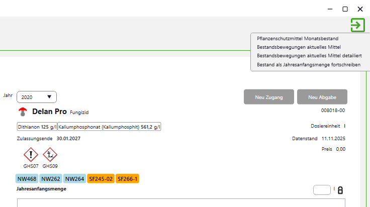 Optional über App: Maschinenkombination | Betriebsmittel | Aufwandmenge