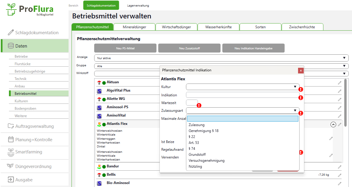 Stellen Sie sich vor: Bisher müssen sie sich merken, welche Arbeiten sie wann, wo und wie ausgeführt haben und dokumentieren wollen. Wir haben es umgedreht: ProFlura sagt ihnen, wann, wo und was sie auf welchen Schlägen an Arbeiten ausgeführt haben. Einfach starten, kontrollieren, finalisieren und auswerten.